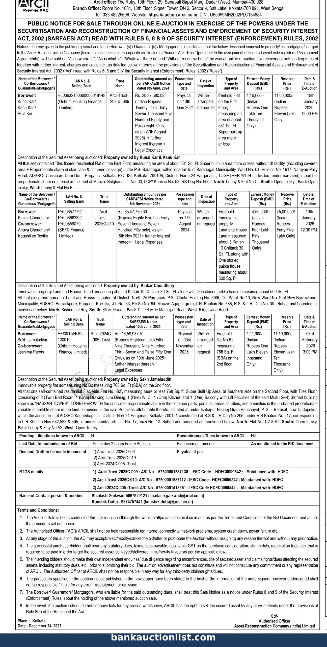 situated at under Ichhapur Nilgunj Gram Panchayet, P. S. Barasat, now Duttapukur, within the Jurisdiction of ADSRO Kadambagachi, District- Nort 24 Parganas, Kolkata-700121 constructed at R.S & L.R Dag No 206, under R.S Khatian No.217, corresponding to L.R Khatian Nos 582,583 & 595, in mouza-Jamtagarh, J.L No. 17, Touzi No. 12. Butted and bounded as mentioned below: