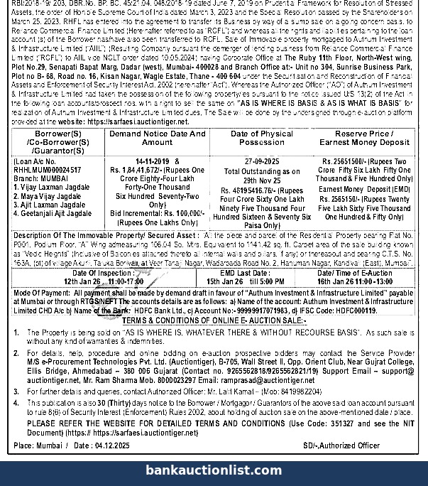 measuring 106.04 Sq. Mtrs. Equivalent to 1141.42 sq. ft. Carpet area of the sale building known as "Vedic Heights" (Inclusive of Balconies attached there to all internal walls and pillars, if any) or thereabout and bearing C.T.S. No. 163A, (pt) of village Akurli, Taluka Borivali, at Veer Tanaji Nagar, Wadarpada Road No. 2, Hanuman Nagar, Kandivali (East), Mumbai.