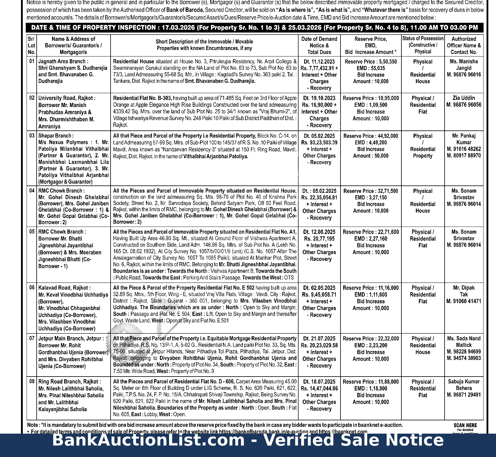 All the Piece & Parcel of the Property Residential Flat No. E 502 having built up area 32.89 Sq. Mtrs., 5th Floor, Wing - E, situated Vraj Villa Flats, Village: Vavdi, City: Rajkot, District: Rajkot, State Gujarat 360 001, belonging to Mrs. Vilasben Vinodbhai Uchhadiya. The Boundaries which are as under:
