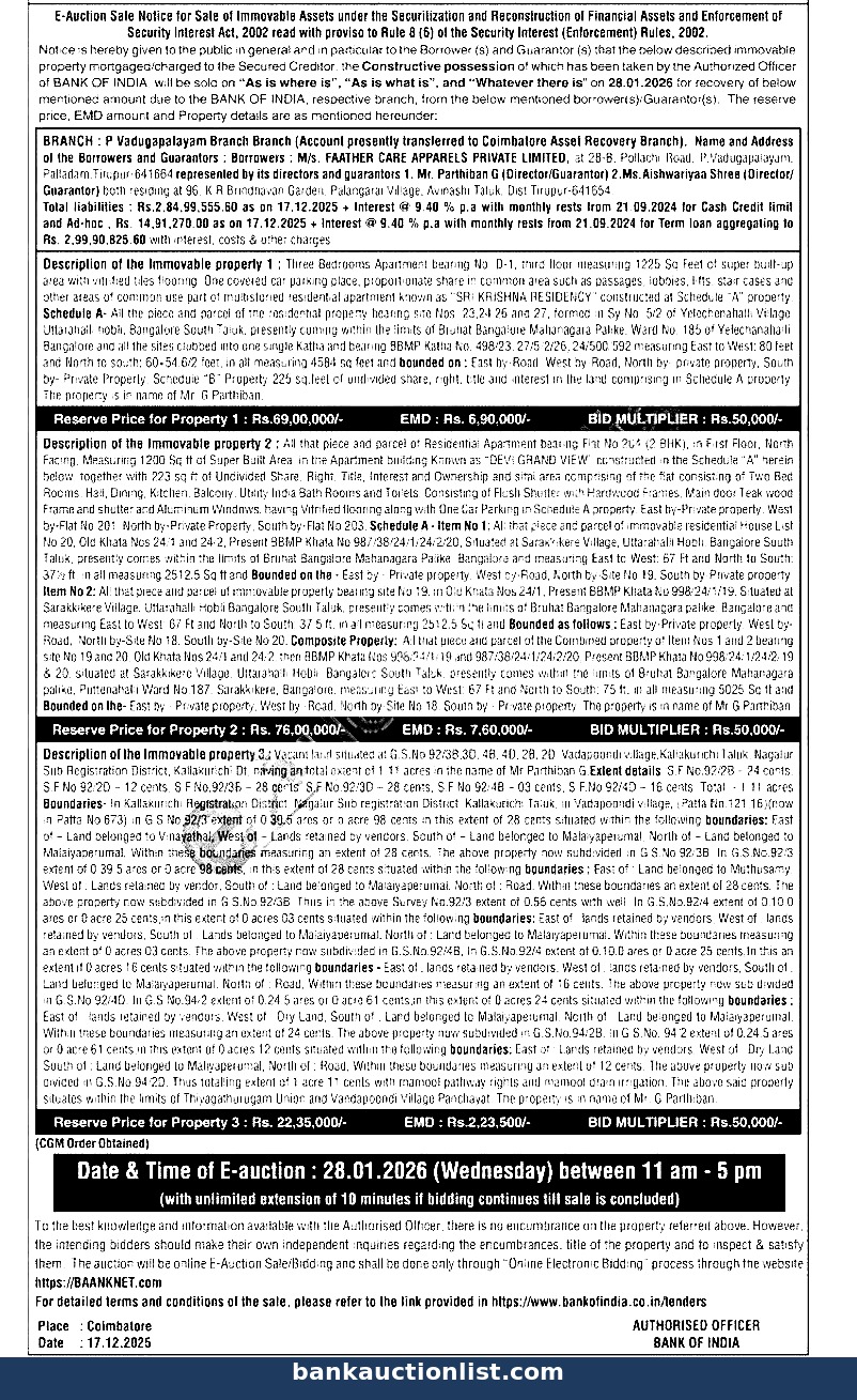 bounded on: East by-Rood. West by-Road, North by private property, South by Private Property, Schedule "B" Property 225 sq feet of undivided share, right, title and interest in the land comprising in Schedule A property The property is in name of Mr. G Parthiban
