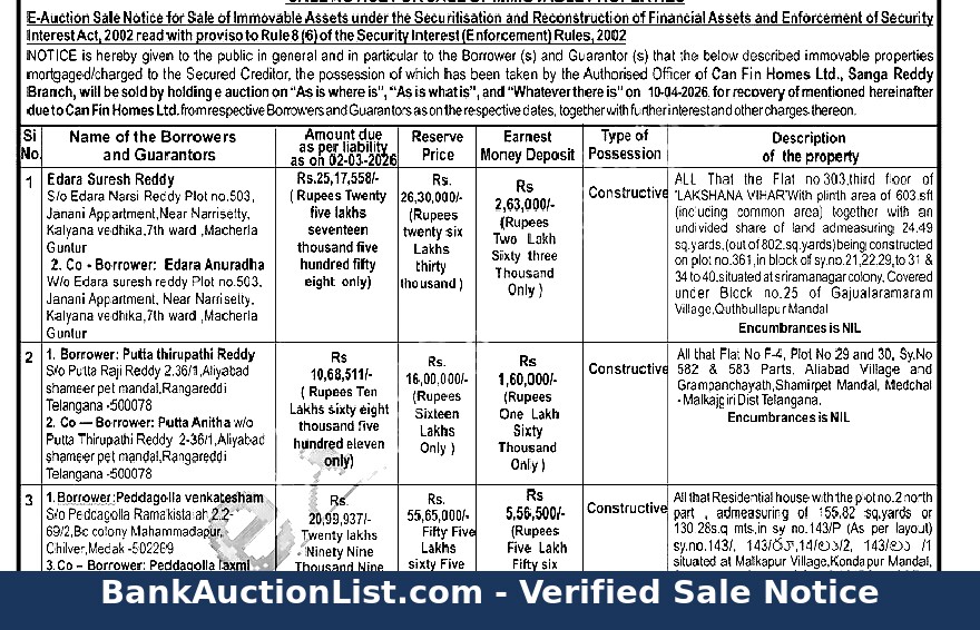 2) All that Flat No F-4, Plot No 29 and 30, Sy.No 582 & 583 Parts, Aliabad Village and Grampanchayath, Shamirpet Mandal, Medchal -Malkajgiri Dist Telangana