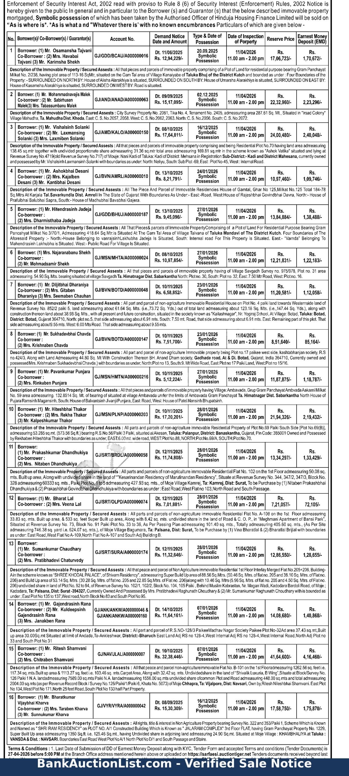 Description of the Immovable Property/Secured Assests: All that pieces and parcels of immovable property comprising of a Plot of Land for residential purpose bearing Gram Panchayat Milkat No. 2/238, having plot area of 113-16 SqMtr, situated on the Gam Tal area of Village Kanaiyabe of Taluka Bhuj of the District Kutch and bounded as under: Four Boundaries of the Property: -SURROUNDED ON