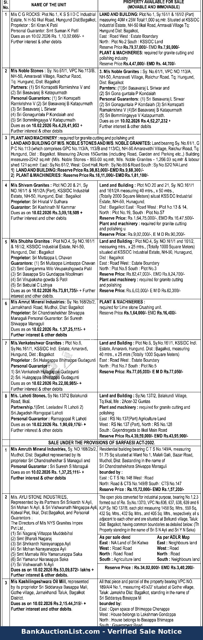 PLANT & MACHINERIES: required for Lime stone Crushing unit