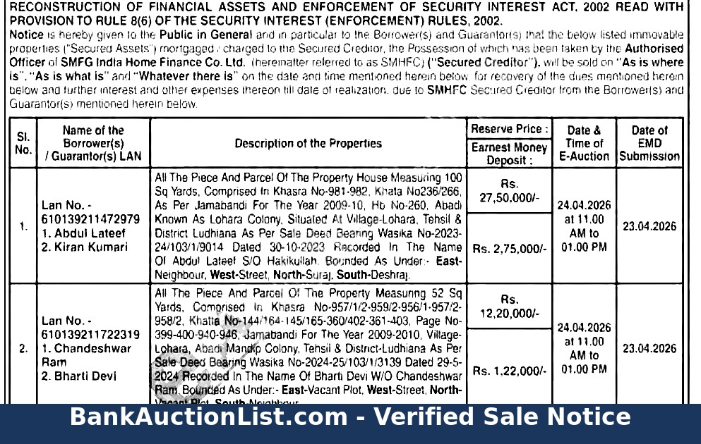 Comprised In Khasra No-957/1/2-959/2-956/1-957/2-958/2, Khatta No-144/164-145/165-360/402-361-403, Page No-399-400-940-946, Jamabandi For The Year 2009-2010, Village-Lohara, Abadi Mandip Colony, Tehsil & District-Ludhiana As Per Sale Deed Bearing Wasika No-2024-25/103/1/3139 Dated 29-5-2024 Recorded In The Name Of Bharti Devi W/O Chandeshwar Ram. Bounded As Under:- East-Vacant Plot, West-Street, North-Vacant Plot, South-Neighbour.