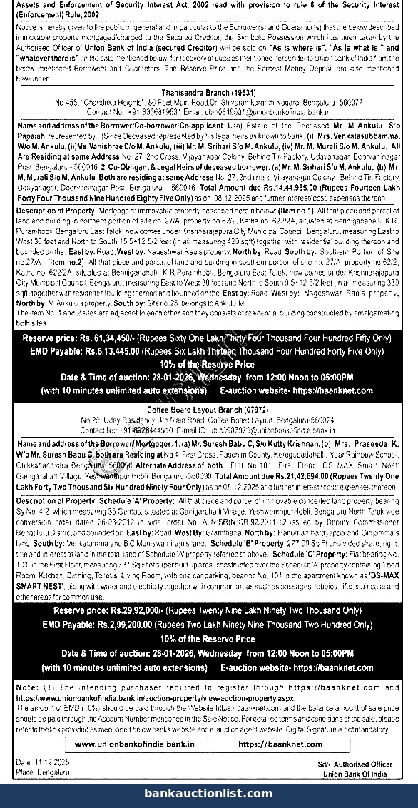 • South: Venkatamma and B C Muniswamiraju's land. Schedule 'B' Property: 277.00 Sq Ft undivided share, right, title and interest of land in the total land of Schedule 'A' property referred to above. Schedule 'C' Property: Flat