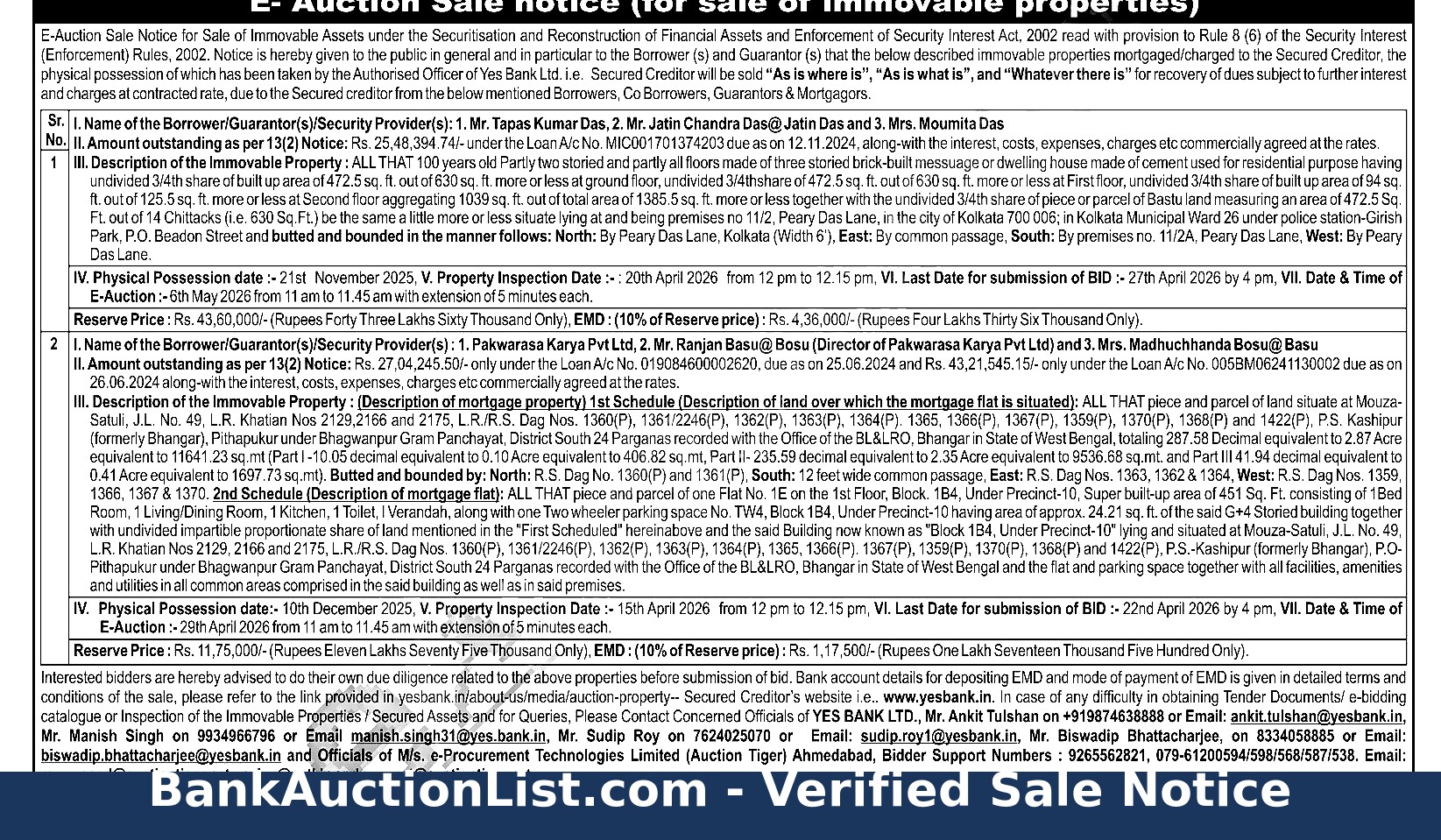 situated at Mouza-Satuli, J.L. No. 49, L.R. Khatian Nos 2129, 2166 and 2175, L.R./R.S. Dag Nos. 1360(P), 1361/2246(P), 1362(P), 1363(P), 1364(P), 1365, 1366(P). 1367(P), 1359(P), 1370(P), 1368(P) and 1422(P), P.S.-Kashipur (formerly Bhangar), P.O-Pithapukur under Bhagwanpur Gram Panchayat, District South 24 Parganas recorded with the Office of the BL&LRO, Bhangar in State of West Bengal and the flat and parking space